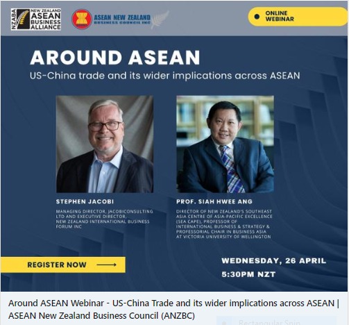 New Zealand ASEAN Business Alliance (ABA)’s premiere Chamber partner, ASEAN New Zealand Business Council (ANZBC), is delighted to host the first Around ASEAN Webinar on Wednesday, […]